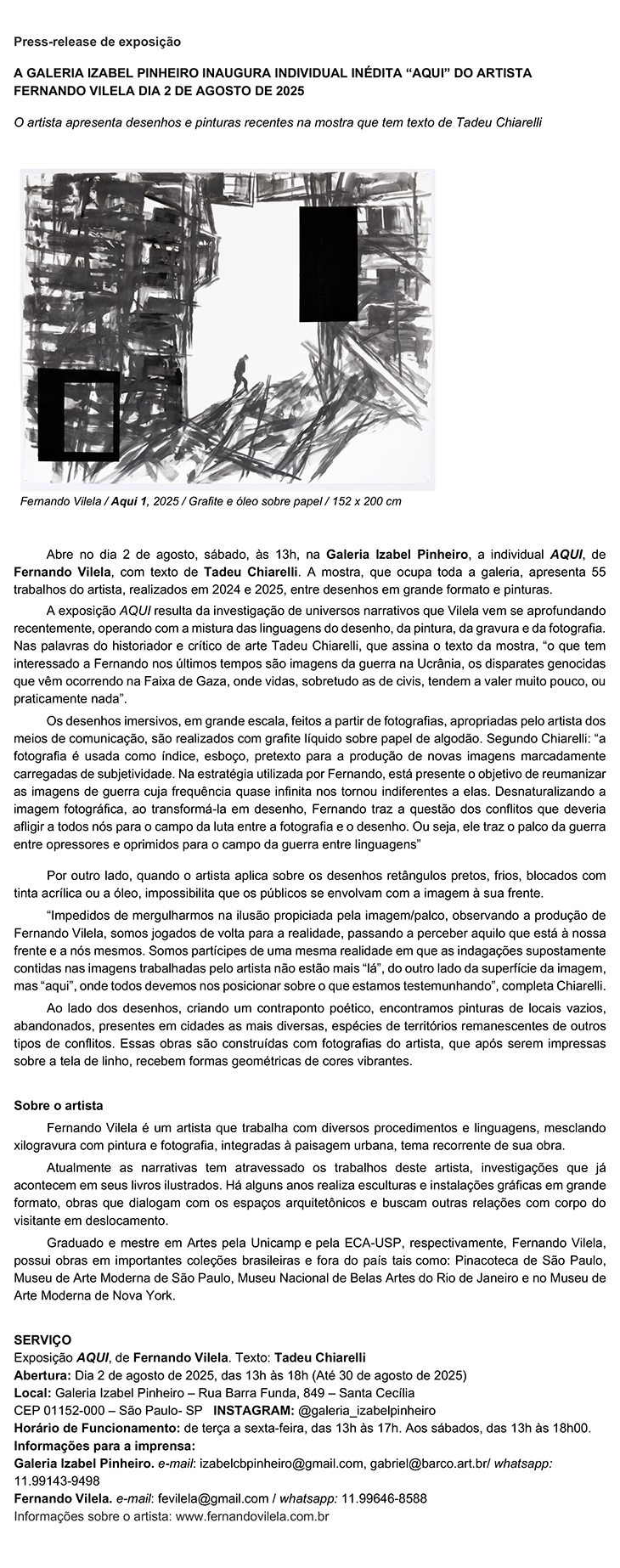 Informações para a imprensa: Galeria Izabel Pinheiro